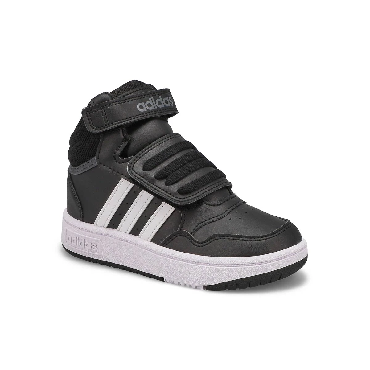 Chill in the park with your pals. Dress in track pants or jeans. Wear whatever you want as you do all of your everyday deeds in style and comfort in the Hoops Mid 3.0 K black/ white sneaker from Adidas. The iconic 3-Stripes on the synthetic leather upper, plus a rubber cupsole underneath, create a heritage vibe.