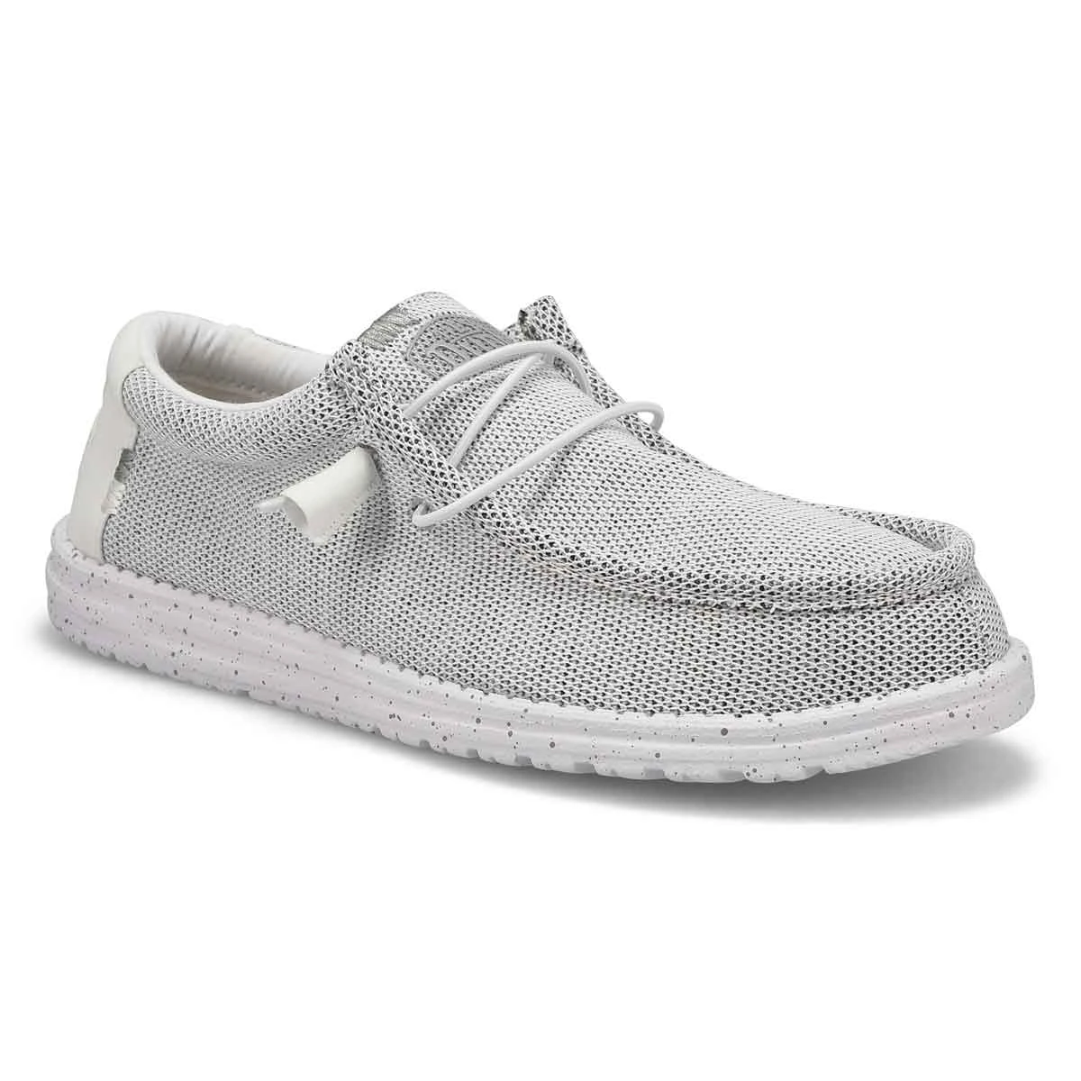 The Wally Sox beige casual from HEYDUDE will be an instant favorite in your casual collection. Made from woven knit fabric upper, with memory foam cushioned, removable insole. They feature a rounded toe, and have low-top, chukka construction. These are conveniently machine washable, and come with an ultra-light, lugged synthetic outsole.